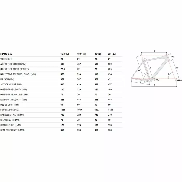 Tailles : 16.0″ (S), 18.0″ (M), 20″ (L), 22″ (XL)